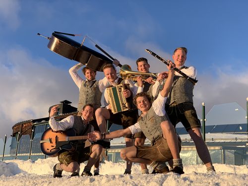 Derzeit spielen wir in folgender Besetzung: Toni Höller auf dem Flügelhorn, Bernhard Schernthaner auf der Klarinette, Christoph Schernthaner auf dem Tenorhorn, Florian Neumayr auf der steirischen Harmonika und Simon Stöckl auf dem Bariton.