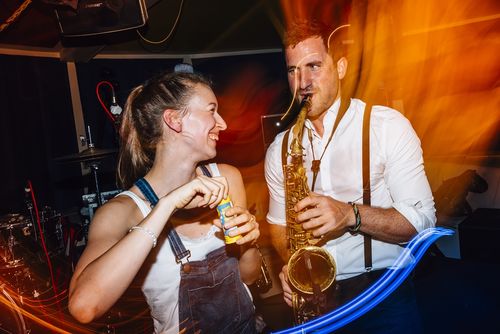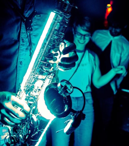 Für heiße Partys auf denen getanzt werden soll. Live Sax Performance zum DJ, im Club oder bei Firmenevent. Außergewöhnliche Musik-Show mit leuchtendem Saxophon. Auf großen Bühnen oder mitten im Publikum. Der Salzburger Saxophonist heizt die Stimmung an.